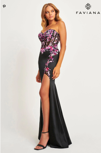Floral Corset Strapless Gown w/ Slit