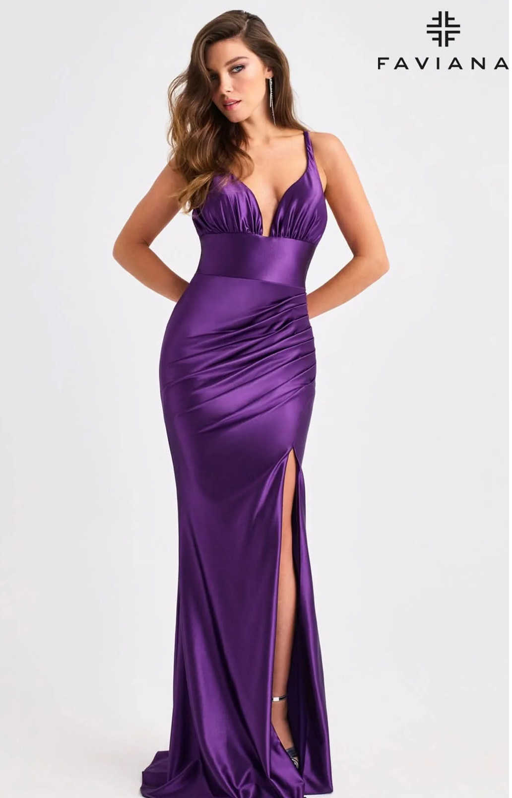 Simple V Neck Gown w/ Thick Waistband and Ruching
